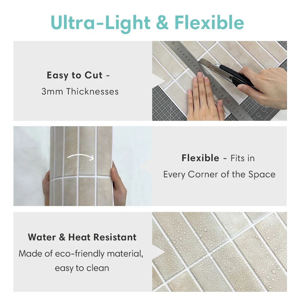 Elevate your decor while enjoying easy maintenance and a quick installation process. Each panel measures 30 x 30 cm, and a pack of 10 covers 9.7 sq ft. Ideal for any wall surface, these tiles are lightweight and flexible, making updates a breeze.