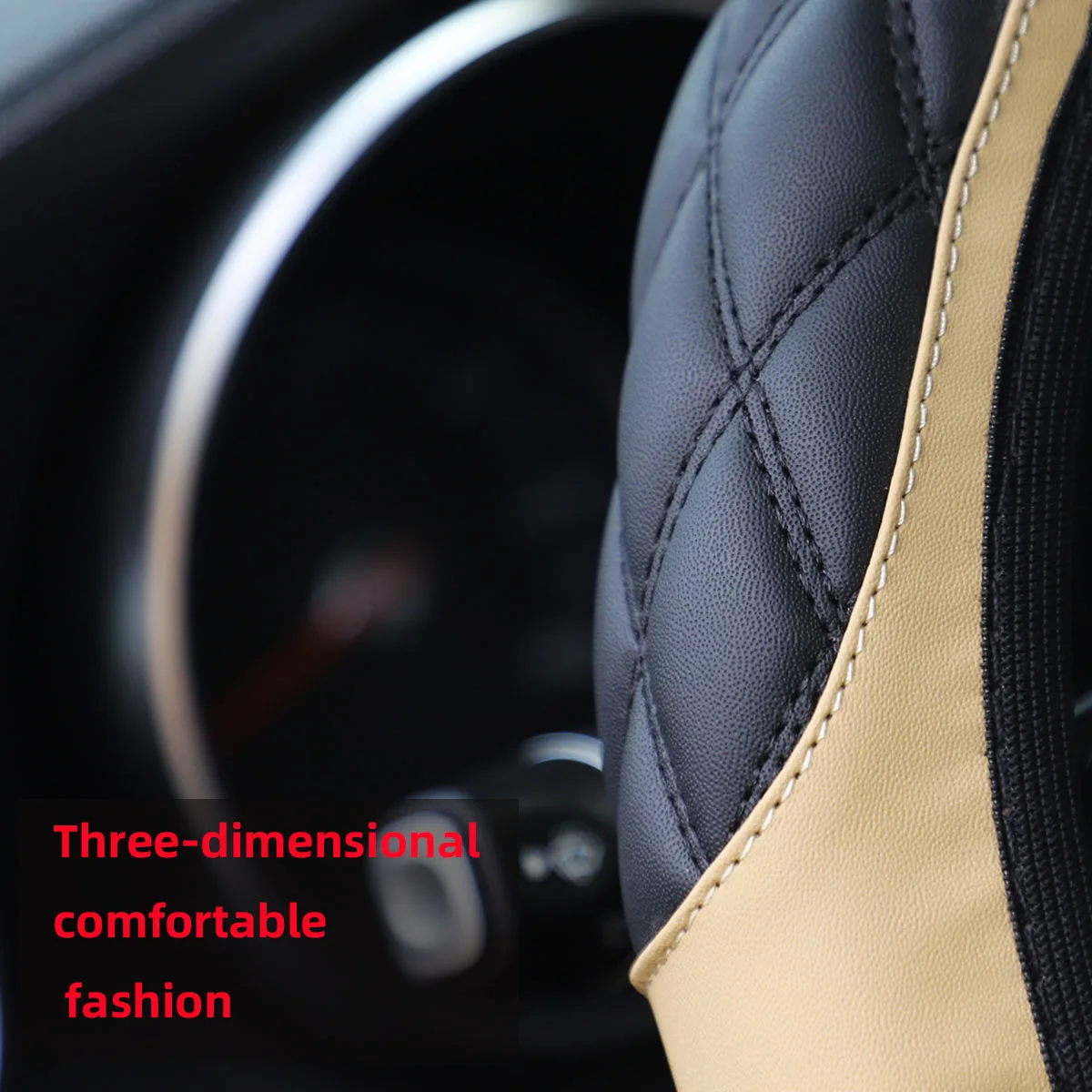 Upgrade your driving experience with our Leather Stereo Embroidered Comfortable Non-Slip Car Steering Wheel Cover. Designed to enhance comfort and grip, this stylish cover fits 14.1-15 inch steering wheels perfectly.
