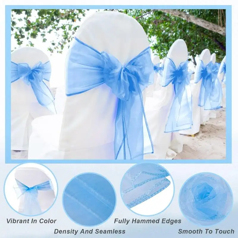 Enhance your decor effortlessly with these chair bows. They are simple to tie and can be reused for multiple celebrations, making them a cost-effective choice for event planners and DIY decorators alike.