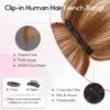 Transform your look with the 100% Human Hair Bangs Clips in Air Fringe Hairpiece. Perfect for adding charm and versatility to your style, these honey brown bangs seamlessly blend with your hair for a natural appearance.