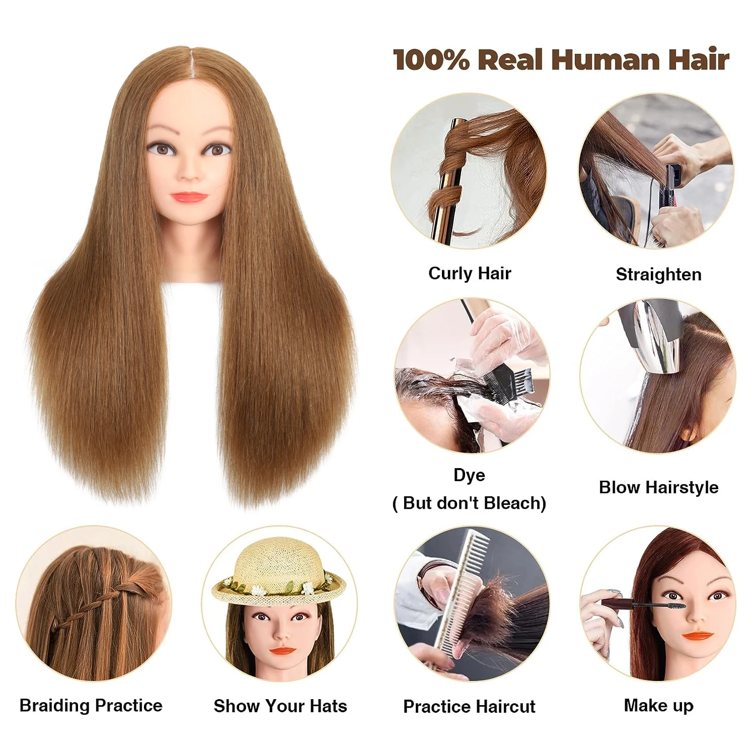 Elevate your hairstyling skills with our 100% Real Hair Mannequin Head. Perfect for professionals and aspiring stylists alike, this training head offers a realistic experience for practicing a variety of techniques.