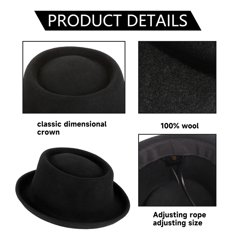 Elevate your style with the 100% Wool Pork Pie Fedora Hat, a timeless accessory for every season. Perfect for both men and women, this hat combines classic charm with modern versatility.