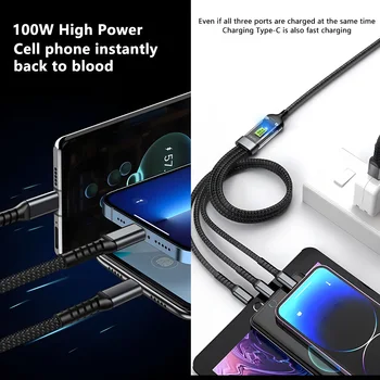 Introducing the 100 W 5 A Fast Charging 3-in-1 USB To Type-C Micro Fast Charger Cable – your ultimate charging solution for multiple devices in one convenient package. Perfect for iPhone 14, 13, Samsung, Xiaomi, and Huawei users.
