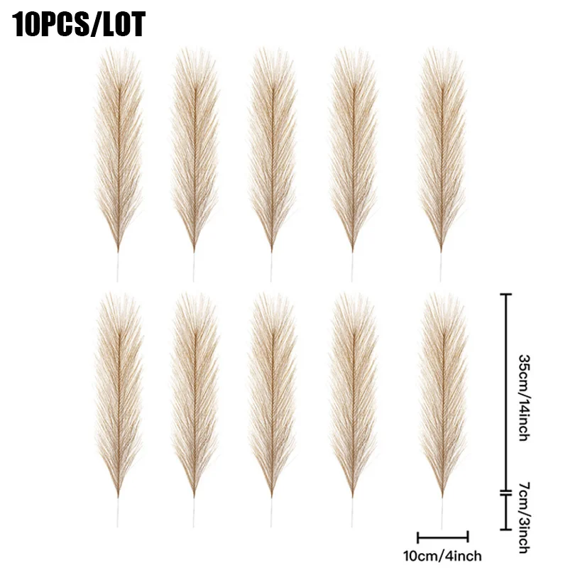 Elevate your decor with our 10 pc 14 in Pampas Grass Artificial Flowers. Perfect for boho aesthetics, these faux reeds add a touch of elegance to any room or event.