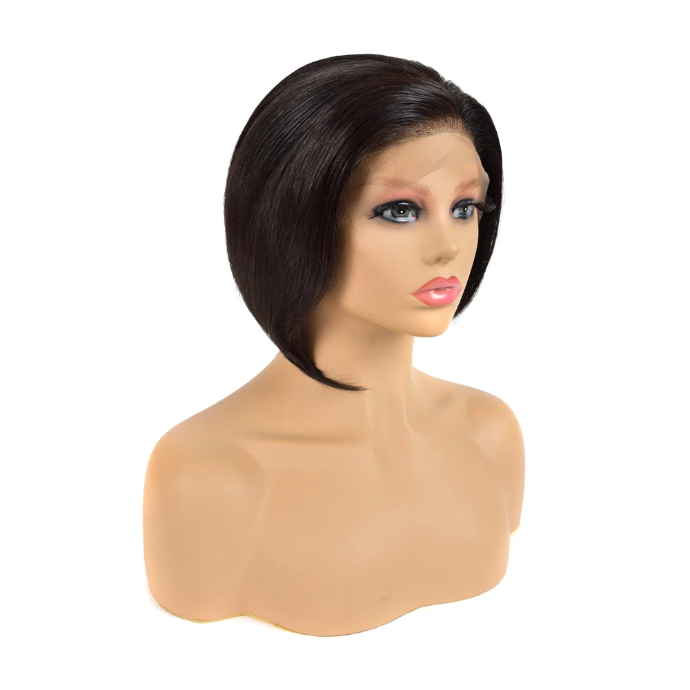 Elevate your style effortlessly with the 13 x 4 Lace Front Human Hair Short Bob Pixie Cut Wig. This chic and versatile wig is designed for the modern woman who desires a fashionable look without the fuss.