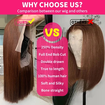 Introducing the 13 x 6 Transparent Full Frontal Lace Wig in a rich #2 Chocolate Brown, the perfect blend of style and elegance. This bone straight bob wig offers a natural look and feel, ideal for any occasion.