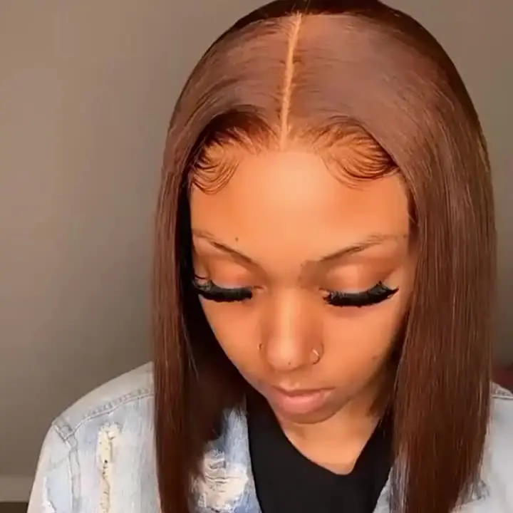 Elevate your style effortlessly with our 180% Color #4 Dark Brown Bob Wig. This straight lace front wig offers a flawless look, designed for versatility and comfort.