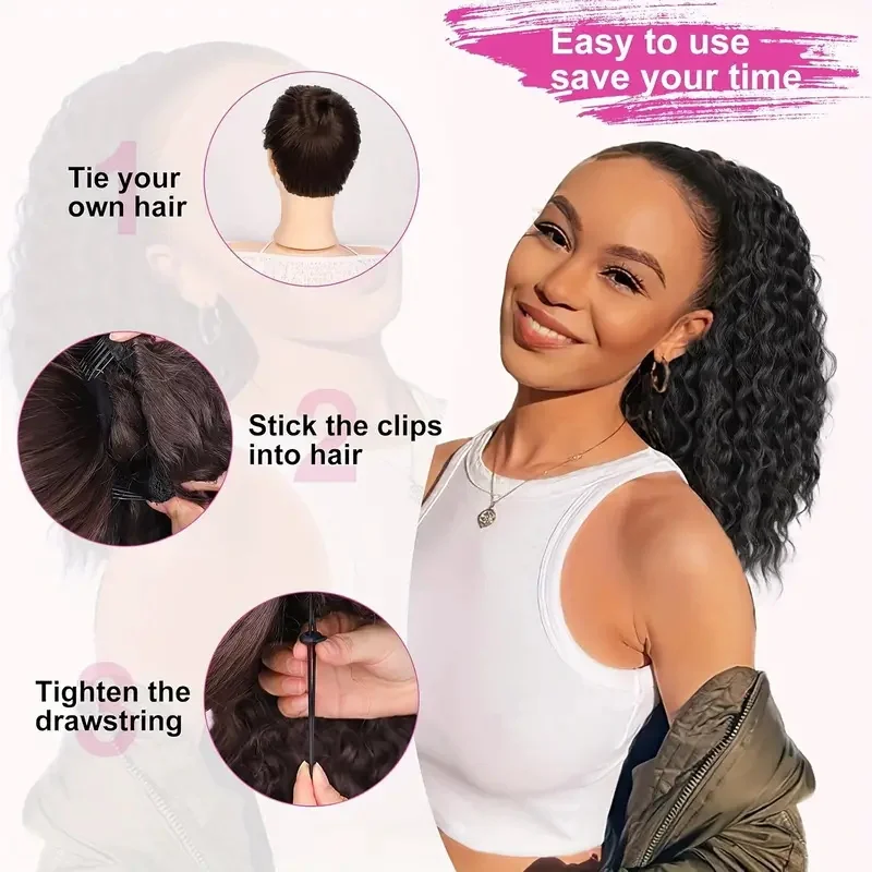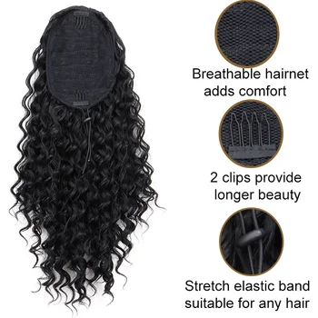 Transform your look effortlessly with our 18 Inch Synthetic Drawstring Ponytail Extension. This long, curly clip-in hair extension offers a stunning wavy ponytail that enhances your style for any occasion.