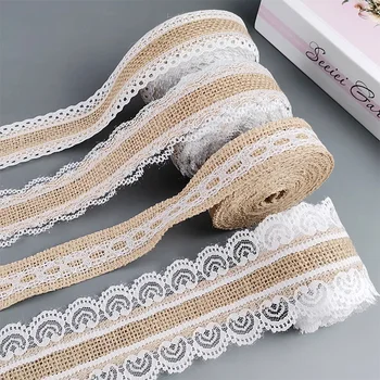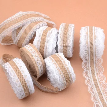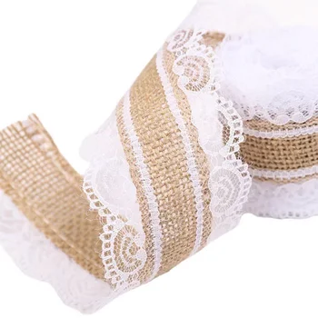 Elevate your DIY projects and special events with our 2/5 Meter Burlap Ribbon featuring a charming white lace trim. Perfect for adding a rustic yet elegant touch to any occasion.