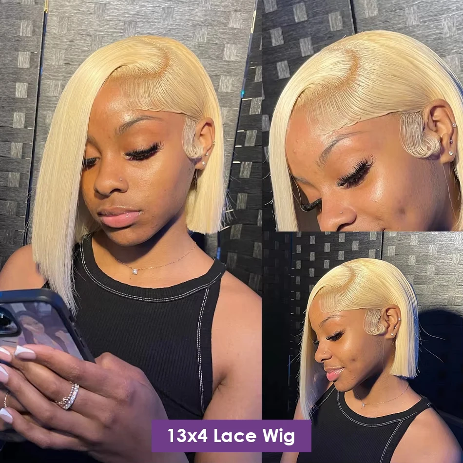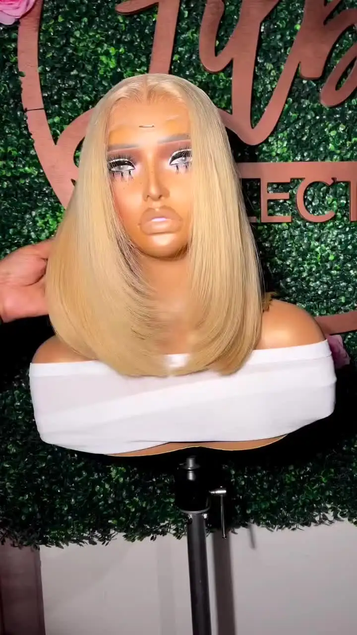 Transform your look effortlessly with the 200% 613 Honey Blonde Short Bob Wig. This straight lace front human hair wig offers a seamless blend of style and comfort, perfect for any occasion.