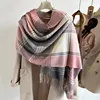 Elevate your winter wardrobe with the 2023 Warm Plaid Cashmere Shawl Poncho. This luxurious wrap combines style and comfort, making it the perfect accessory for any occasion.
