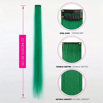 Transform your look instantly with our 22 Inch Synthetic Long Straight Clip In Hair Extensions. Perfect for adding vibrant rainbow colors, these high-temperature hairpieces are designed for women who want to make a bold statement.