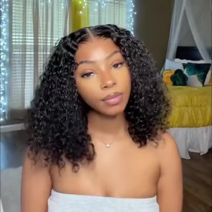 Discover the beauty of versatility with our 230% Curly Deep Wave 13 x 4 HD Lace Front Wig. Crafted from 100% unprocessed Brazilian Remy hair, this short bob wig is designed for effortless style and comfort.