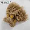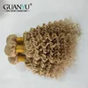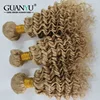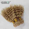 Experience the allure of #27 Honey Blonde Deep Wave Ombre Colored Hair Bundles with Closure. Perfect for adding volume and style, these 100% Remy human hair extensions offer a natural look and feel.