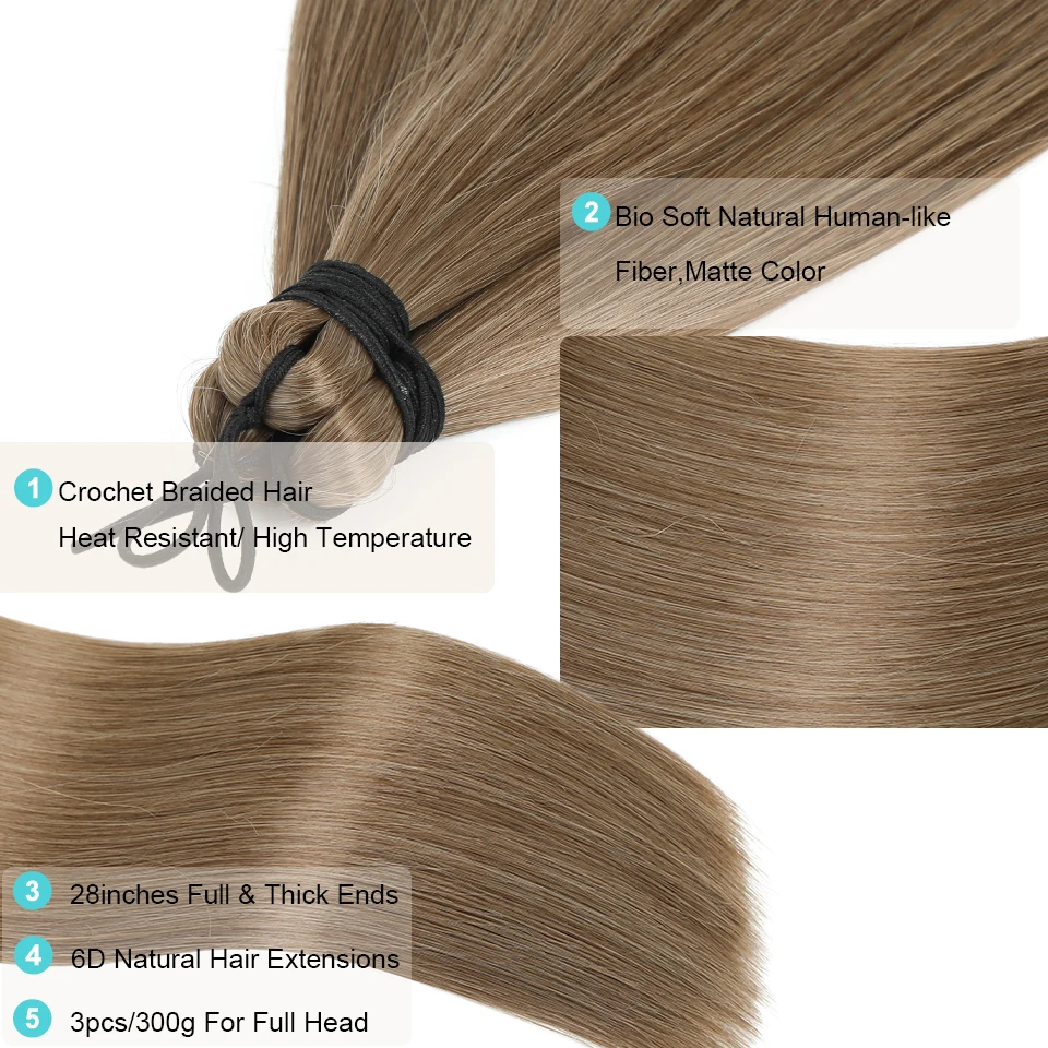Transform your look effortlessly with our 28 Inches 3 Pcs/Lot Ariel Crochet Braiding Straight Ponytail. Crafted from premium Kanekalon High Heat Fibre, these stunning ombre blond hair bundles will elevate your style with ease.