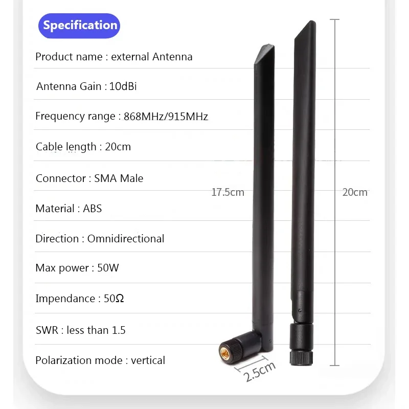 Elevate your GSM and IoT connectivity with our 2 pcs 868 MHz 915 MHz Antenna. Designed for optimal performance, this antenna is perfect for enhancing signal strength in various applications.