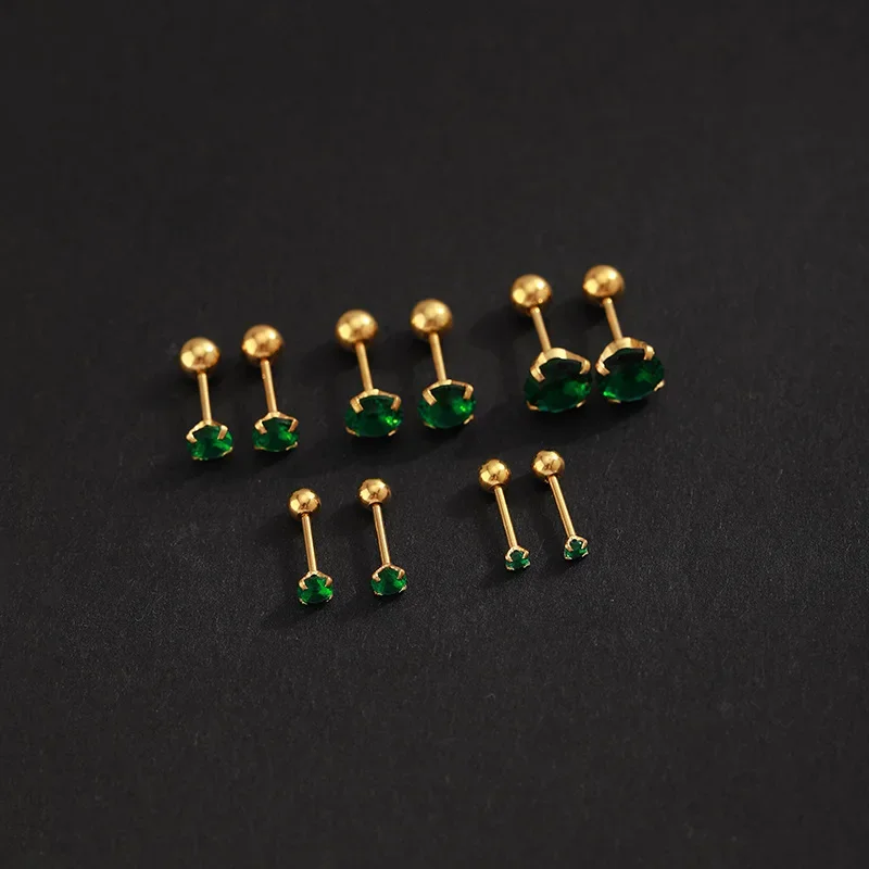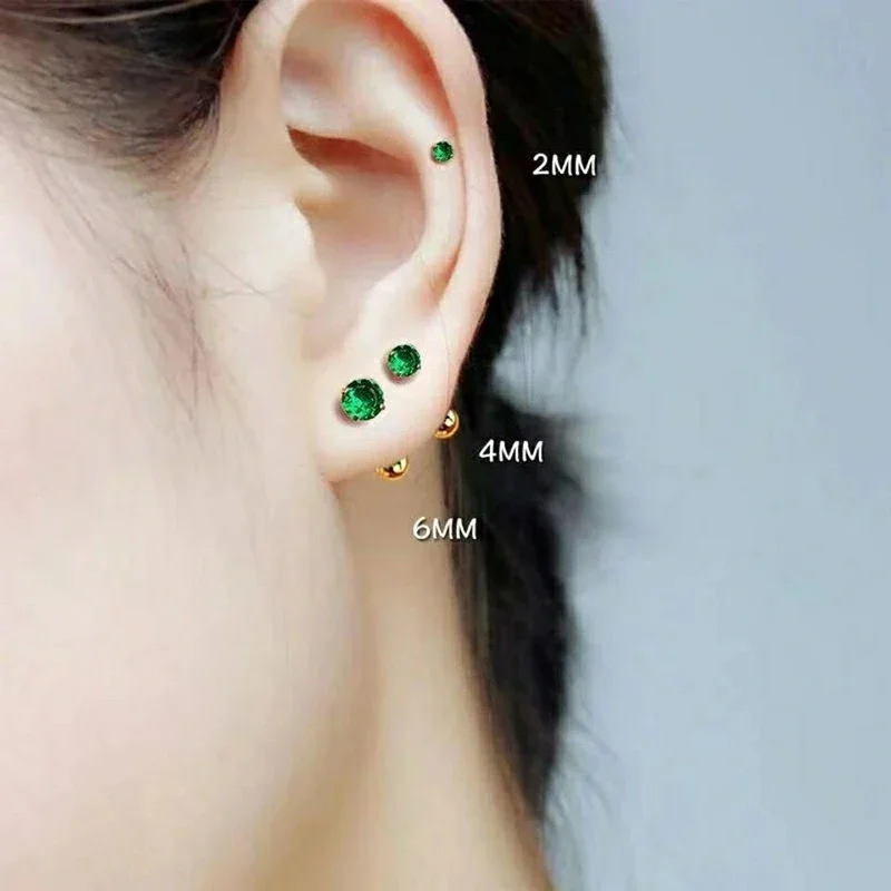 Elevate your style with the stunning 2 Pcs Stainless Steel Green Zircon Ear Studs Earrings. Perfect for helix, tragus, or cartilage piercings, these earrings combine elegance and durability.