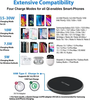 Experience the power of fast charging with our 30 W Fast Wireless Charger Pad. Designed for efficiency, it’s compatible with iPhone and Samsung Galaxy models, ensuring your devices are always ready to go.