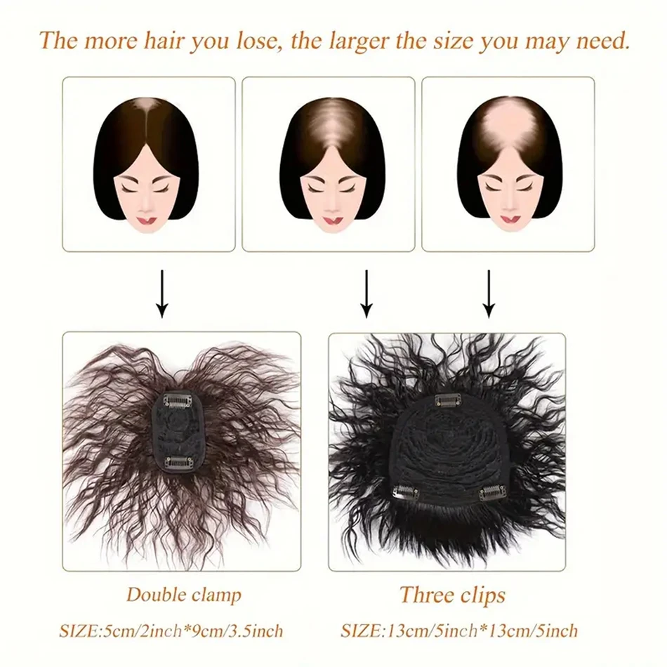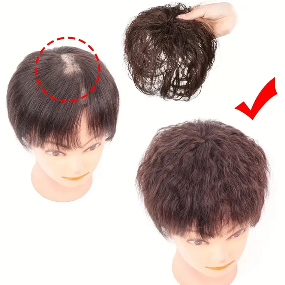 Transform your look effortlessly with the 3D Bangs Invisible Short Curly Synthetic Topper Wig. Designed for seamless integration, this clip-in hair topper enhances volume while concealing white hair.