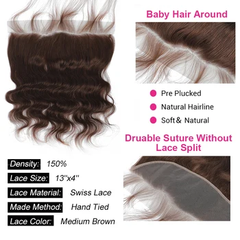 | Brazilian Virgin Remy Human Hair | 3 Bundles with 13×4 Lace Closure BrownColor |