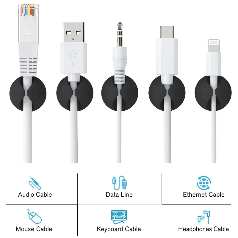 Keep your environment neat and safe from tripping hazards. Simply stick the clips where you need them and enjoy a more organized workspace. Made from durable silicone with double-sided tape, these clips are built to last.