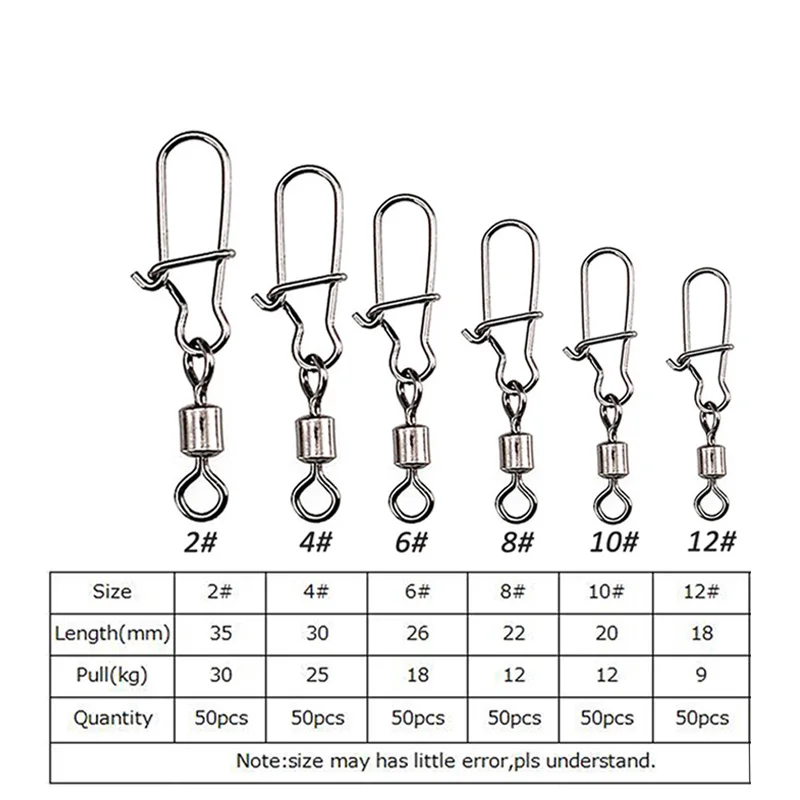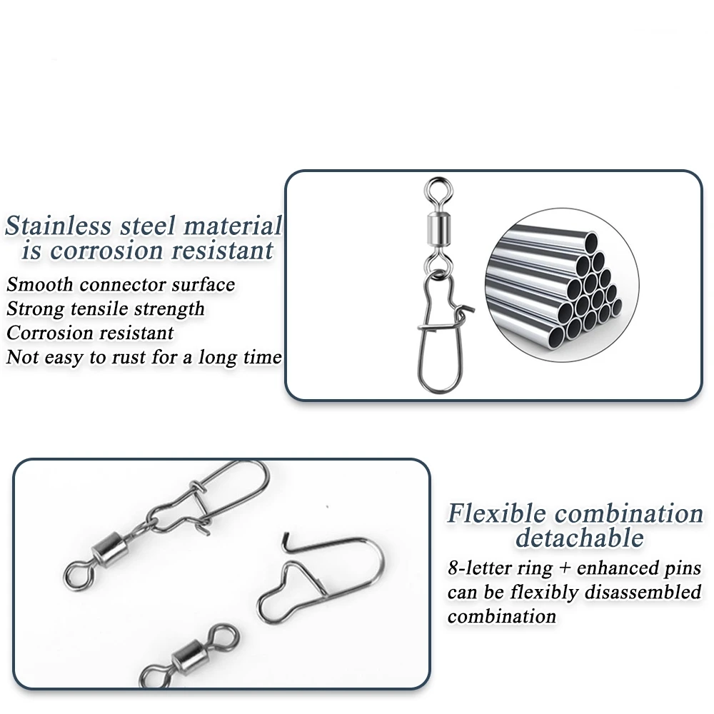 Elevate your fishing game with our 50 pcs Fishing Connector Stainless Steel Snap Bearing Rolling Fishing Hooks. Designed for versatility, these hooks are perfect for both seasoned anglers and beginners alike.