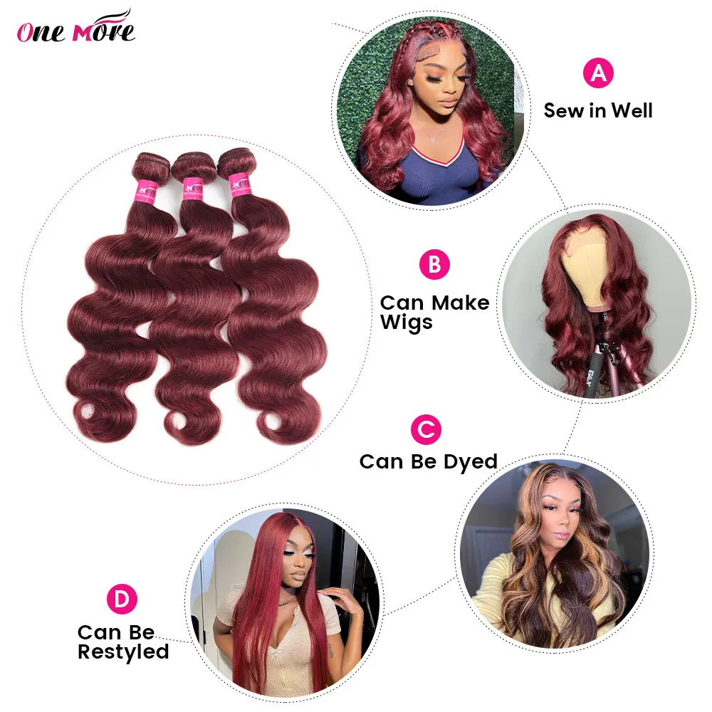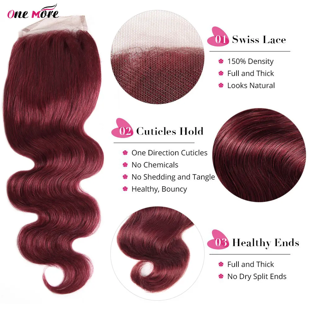 | Hair Color | 99J Burgundy Body Hair Bundles With Closure |