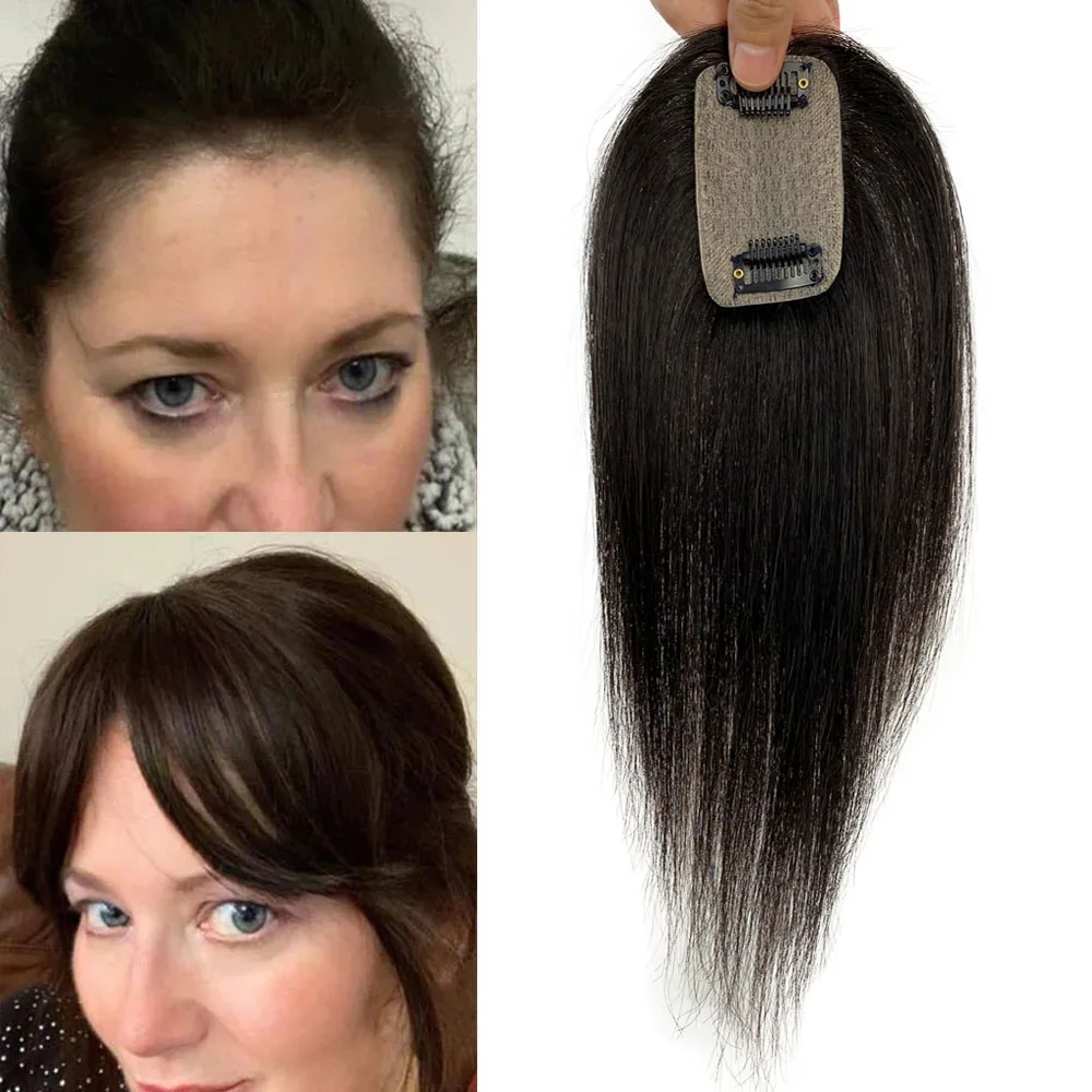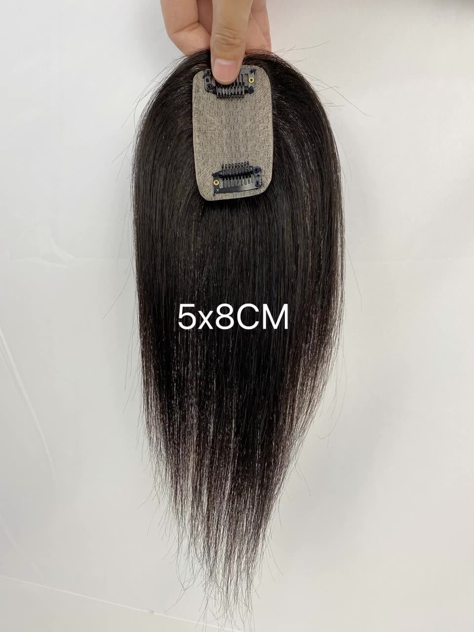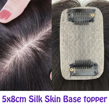 Transform your look effortlessly with the 5 X 8 CM Silk Base Virgin Human Hair Mini Topper. This stylish toupee is designed for women seeking to conceal bald spots or white hair seamlessly.