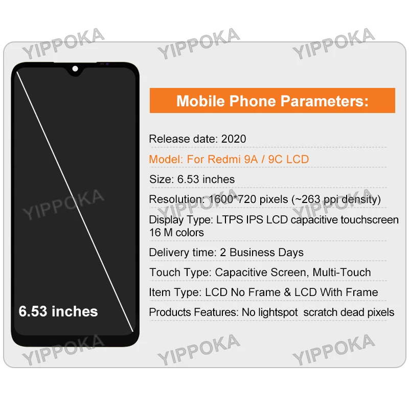 Revitalize your Xiaomi Redmi 9 A or Redmi 9 C with our premium 6.53" LCD display assembly. Designed for seamless compatibility, it brings your device back to life with stunning visuals and responsiveness.
