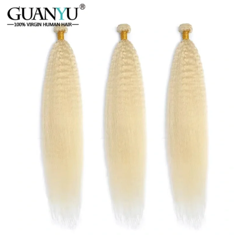 Elevate your style with our #613 Blonde Kinky Straight Hair Bundles with Frontal. This luxurious weave offers versatility and a stunning look, perfect for any occasion.