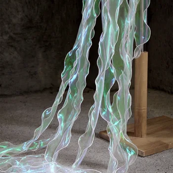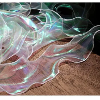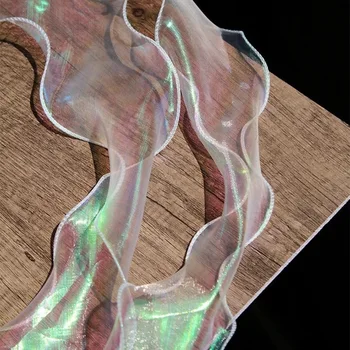 This lace ribbon is perfect for embellishing bouquets, enhancing home décor, or adding flair to your handmade accessories. Its fine organza fabric provides a delicate yet sturdy finish, making it easy to work with for various projects.