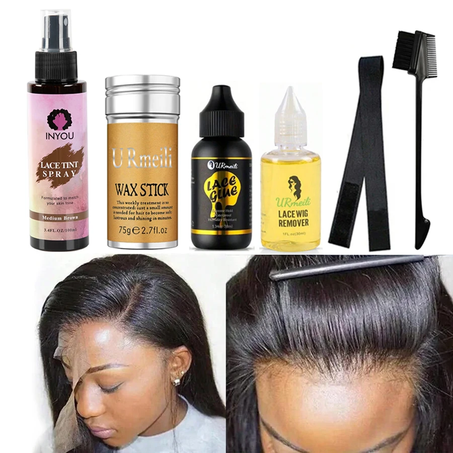 Achieve a seamless look with this kit. The lace adhesive offers strong hold, while the glue remover ensures easy and gentle removal. The lace tint spray enhances the natural appearance of your scalp, and the hair wax stick tames flyaways.