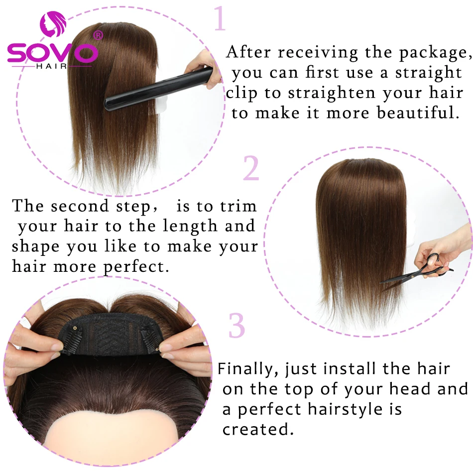 Crafted with high-quality materials, the SOVO Hair Toppers are designed to last up to 6 months with proper care. Simply wash gently and avoid high-heat styling products to maintain their beauty. Elevate your hair game today!
