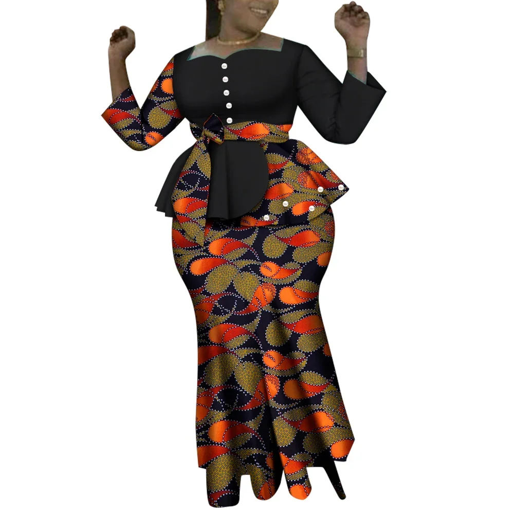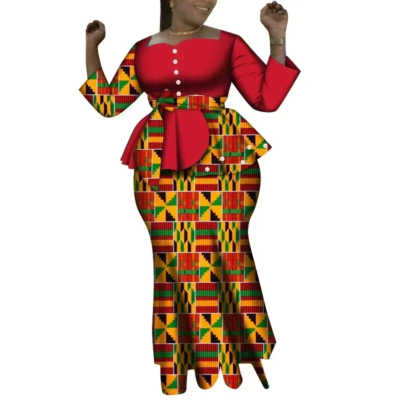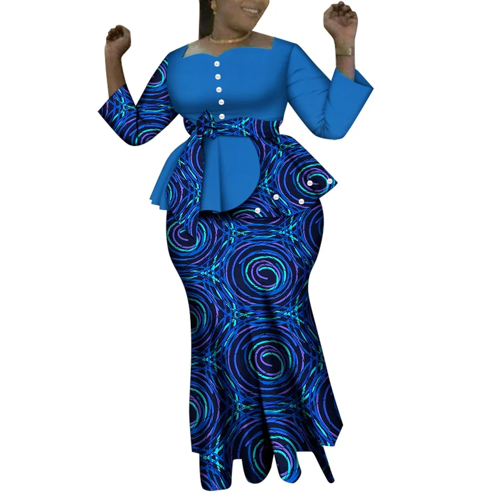Elevate your style with the stunning African Women Clothes Tops and Maxi Skirt Sets. Perfect for parties, weddings, or casual outings, this Dashiki-inspired two-piece set is a must-have for fashion-forward women.