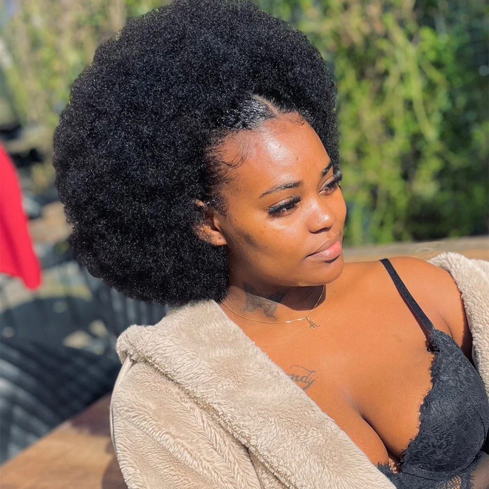 Elevate your hairstyle effortlessly with the Afro Kinky Curly Hair Bun. This 10-inch real human hair drawstring ponytail is designed for women who crave volume and bounce while maintaining a natural look.
