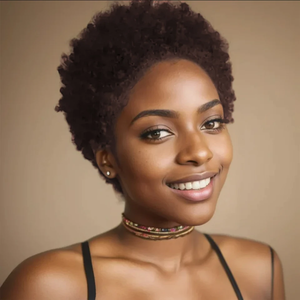 Elevate your style with our Afro Kinky Curly Human Hair Wigs. Designed for women seeking a chic and natural look, this fluffy pixie cut wig is perfect for everyday wear or special occasions.