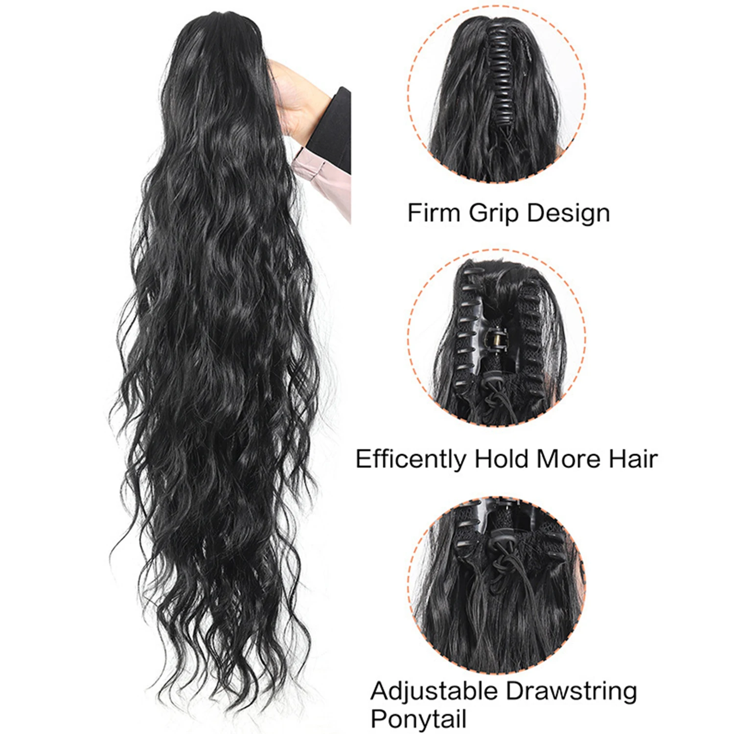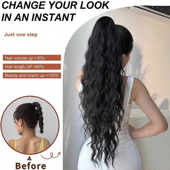 Elevate your hairstyle effortlessly with the Allaosify Synthetic 26" Long Wavy Claw Clip On Ponytail Hair Extension. This stunning hairpiece is perfect for adding volume and flair to any look.