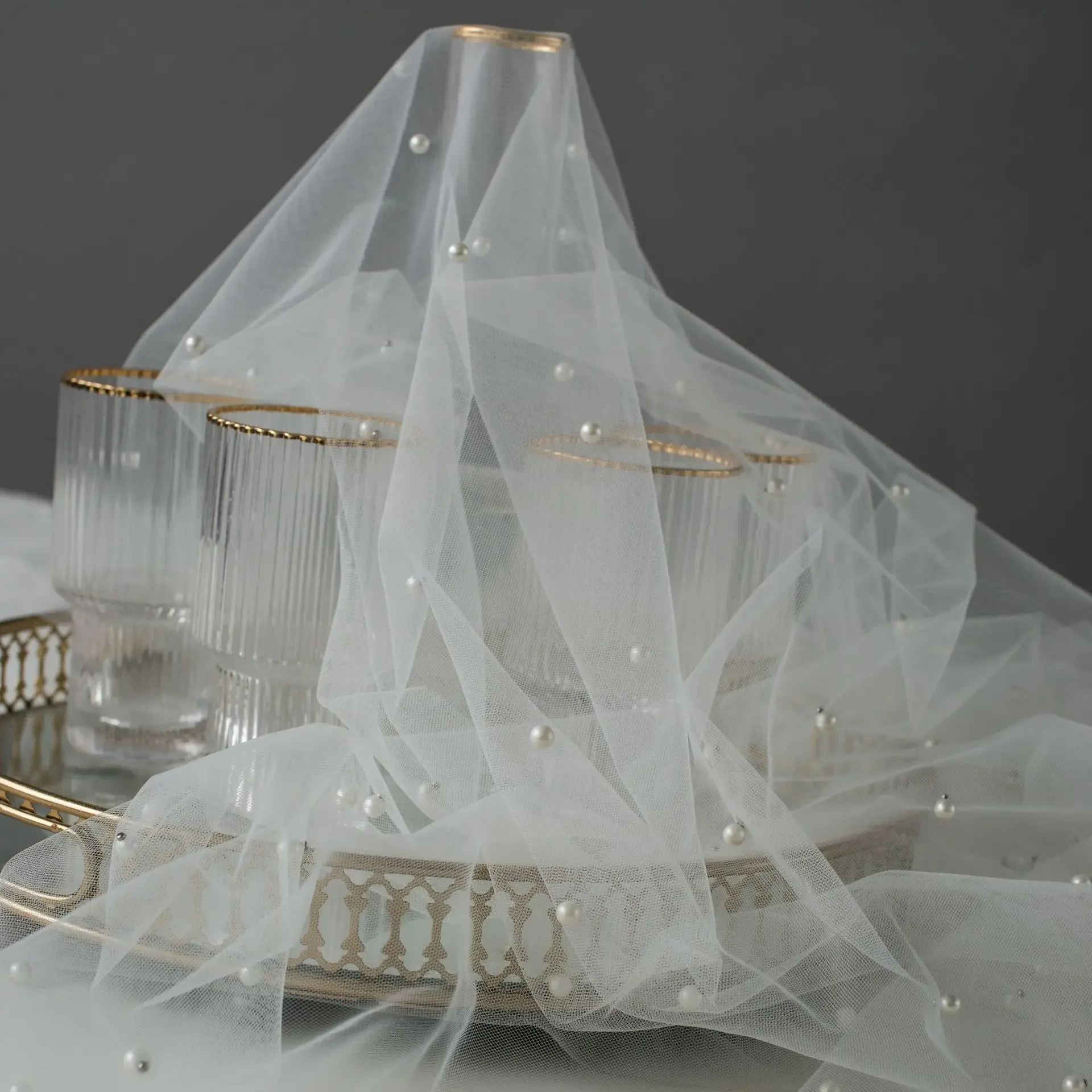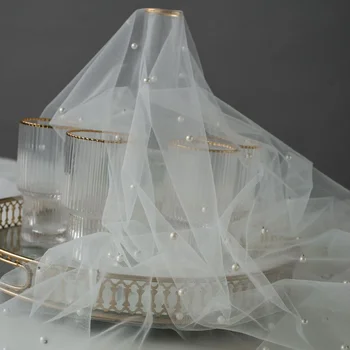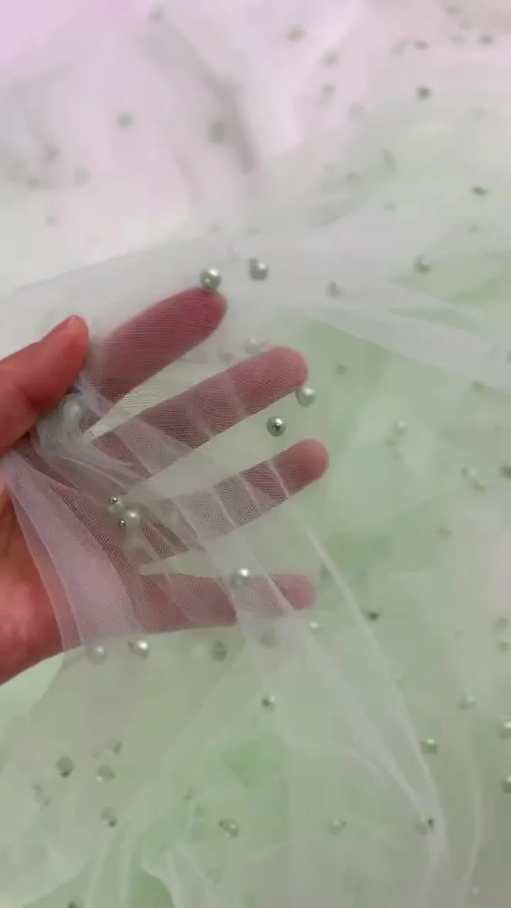 Elevate your creative projects with our Beads Tulle Lace Fabric. This luxurious tulle mesh, adorned with pearls, is perfect for dresses, tablecloths, curtains, and more.
