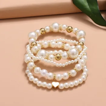Elevate your accessory game with the Beautiful and Versatile Pearl Love Women's Bracelet Set of 4. Perfect for any occasion, this elegant jewelry set adds a touch of sophistication to your look.