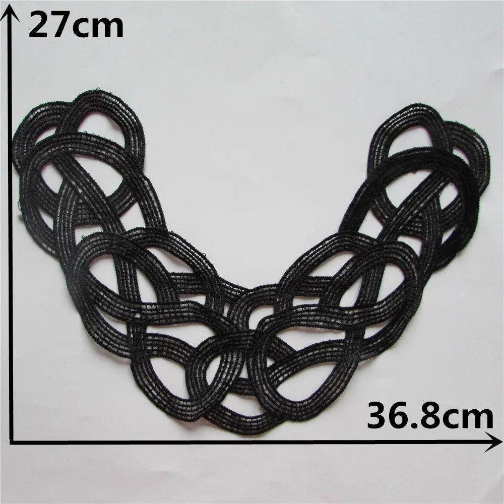 Elevate your sewing projects with our black Embroidered Lace Collar Neckline Venise Applique! This exquisite patch adds a touch of elegance and sophistication to any fabric.
