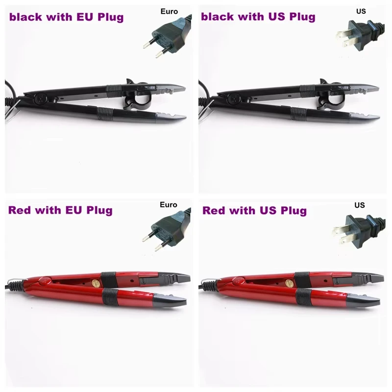 Elevate your hair extension experience with the Black Red Professional Adjustable Temperature Pre Bonded Hair Extension Iron. Designed for precision and ease, this essential tool ensures flawless keratin fusion for stunning results.