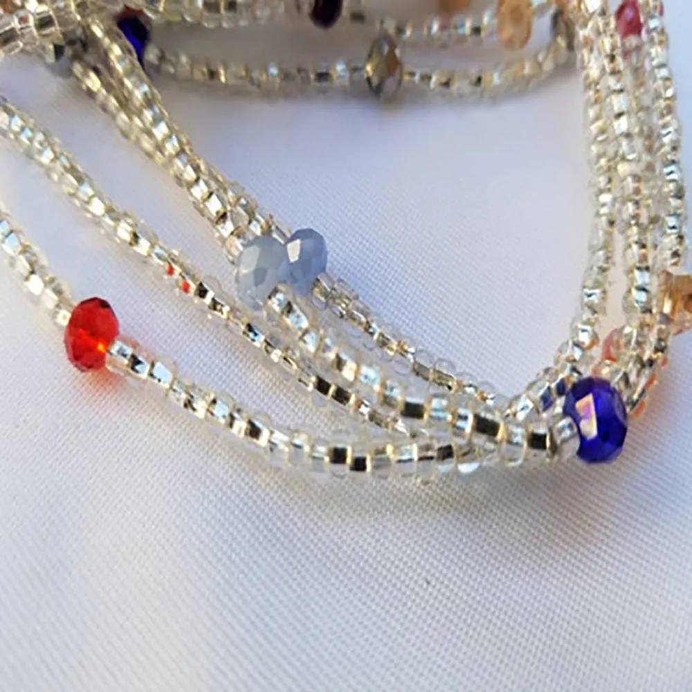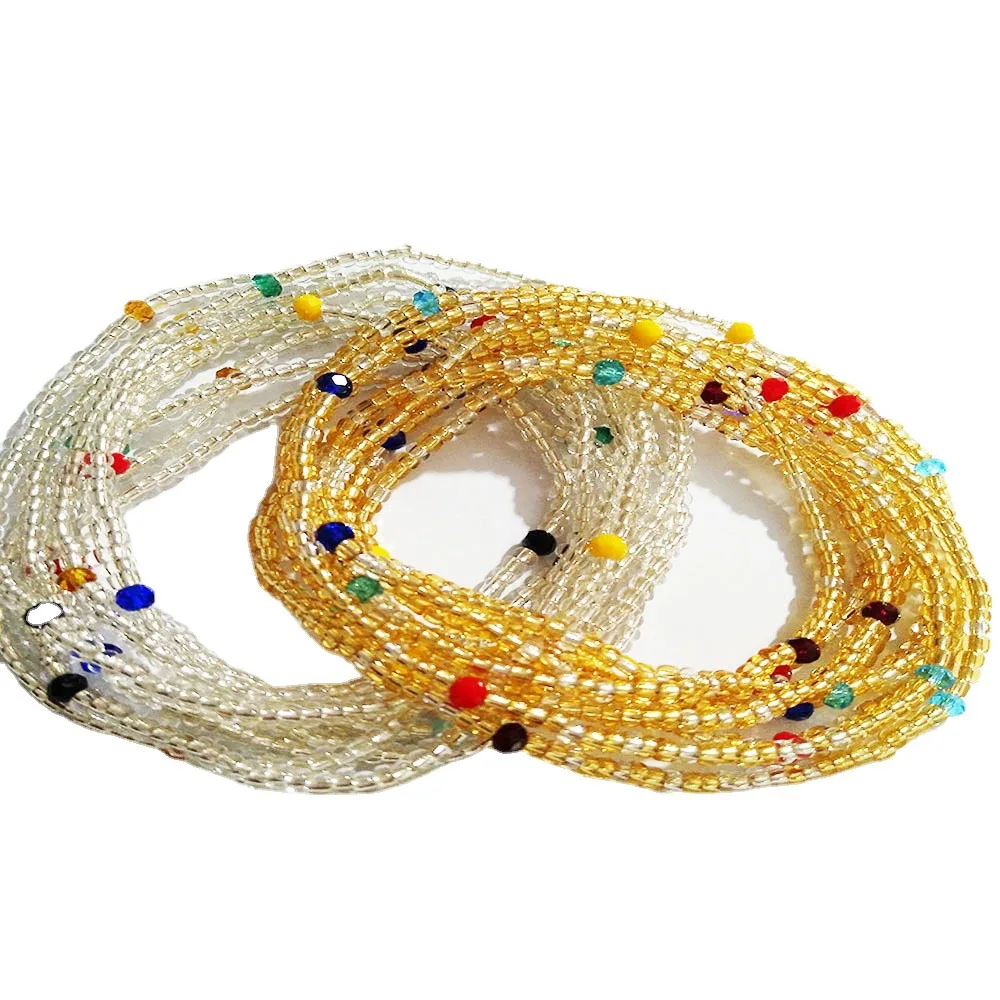 Elevate your summer look with the Bohemia Elastic Waist Belly Chain, the perfect accessory for adding a touch of boho charm to any outfit. This stunning body chain features vibrant glass beads that beautifully accentuate your waist.