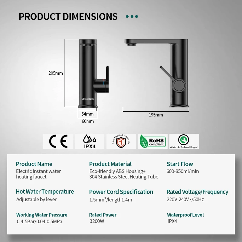 Crafted from quality 304 stainless steel and rated at 3200W, this faucet is built to last. Upgrade your home with this efficient, user-friendly solution that combines style and functionality.