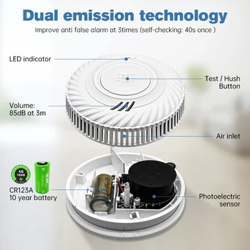 Ensure your home is safe with our Built-in 10 Year Battery Smoke Detector featuring Wi-Fi functionality. This smart device seamlessly integrates with Tuya or Smart Life apps, providing peace of mind at your fingertips.