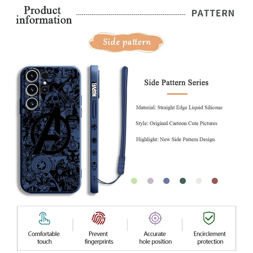 Elevate your style with the Capa Marvel Superhero Logo Square Liquid Cover Case, the perfect blend of protection and flair for your Samsung Galaxy devices.
