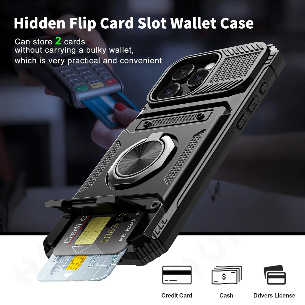 Discover the ultimate protection and convenience for your iPhone with our Magnetic Rotated Ring Kickstand Wallet Case. Engineered for those on the go, this case combines style with functionality.