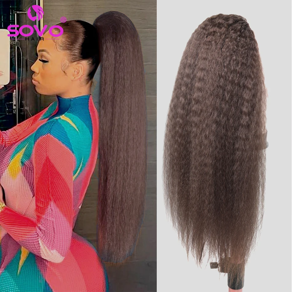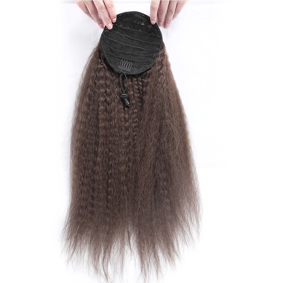 Elevate your style with the Chocolate Brown Kinky Straight Ponytail Human Hair Extensions. Perfect for adding length and volume, this clip-in ponytail is designed for effortless elegance.