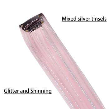 Transform your look instantly with our Clip in Colored Hair Extensions featuring Mixed Silver Tinsels. Perfect for adding a dazzling touch to any outfit, these extensions are ideal for parties, concerts, or everyday glam.
