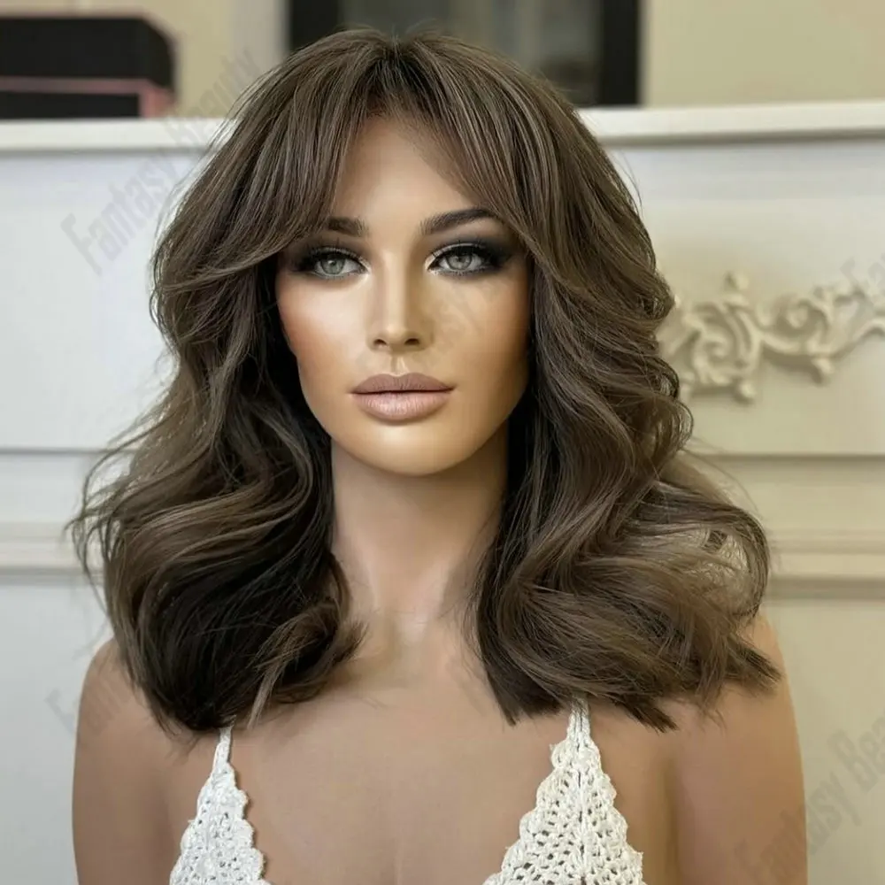 Discover the ultimate in elegance and style with our Cool Brown Body Wave Full Lace Front Human Hair Wig. Designed for the modern woman, this wig features captivating curtain bangs, perfect for any occasion.