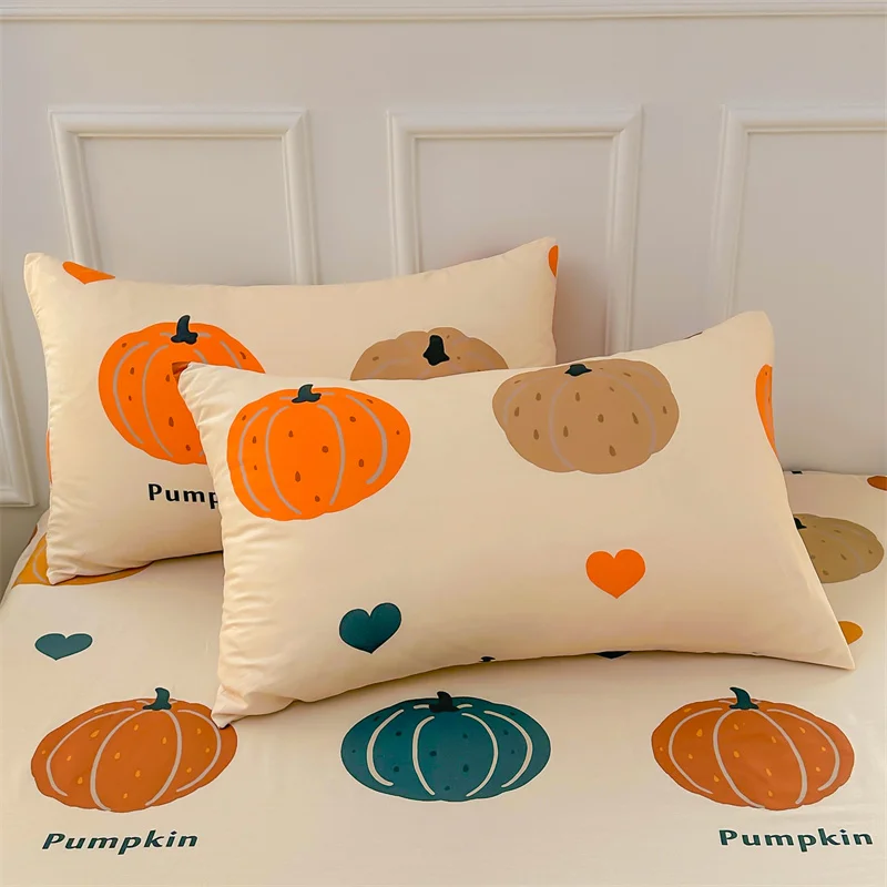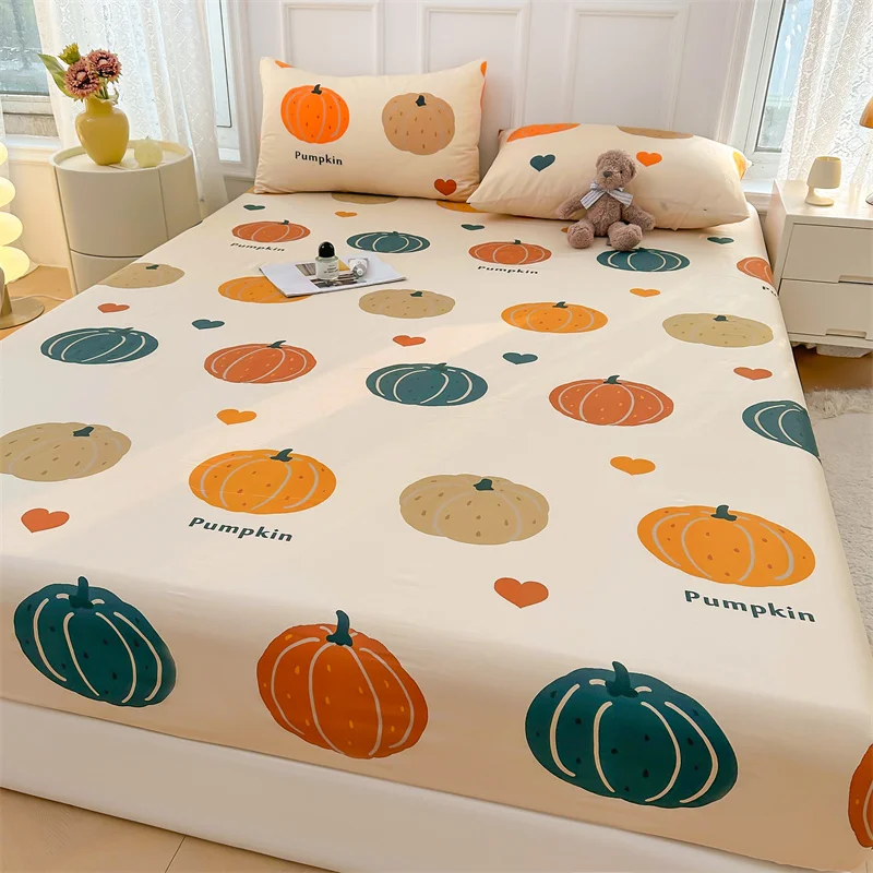 Transform your bedroom this fall with our Cotton Autumn Pumpkin Fitted Sheet Set! Perfect for Thanksgiving, this set combines comfort and style, featuring a charming cartoon love heart pattern that brightens your space.